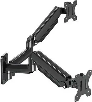 WALI Dual Monitor Wall Mount for 17 to 32 inch Screens, Monitor Wall Mounts for 2 Monitors, Holds up to 22 lbs, Fully Adjustable Gas Spring Monitor Arm,75x75/100x100 VESA Wall Mount (GSWM002), Black