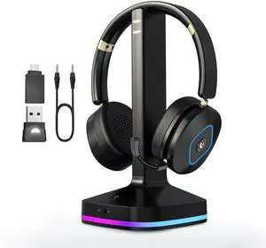 Wireless Headset with Mic for Work and Gaming, 2.4GHz 20ms Ultra-low Latency Fit for PC/ PS4/ PS5/ Cell Phones, Bluetooth Headset with Noise Cancelling Microphone for Work/ Call Center/ Teams - Black