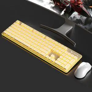 Wireless Keyboard and Mouse Combo, Rechargeable Metal Full Size Mute Keyboard and Ergonomic Mice, 2.4G Ultra-Thin Sleek Design for Windows Computer Desktop PC Laptop (Milky with Warm Light)