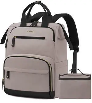 LOVEVOOK Lunch Backpack for Women, 17 Inch Laptop Bag with Insulated Cooler Lunch Box, Work Backpack for Teacher Nurse, Travel Backpacks Lunch Bag for Camping Picnic Daily Use
