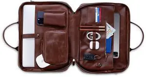 Awesometik Full Grain Leather Organizer, Mac Laptop Bag, Portfolio with Multiple Slots for Documents & Devices Comes With Magnetic Inner Pocket (Tan, Up to 14 inch)