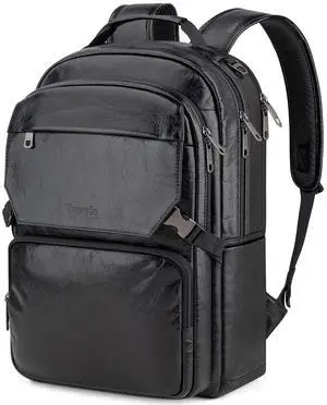 Tzowla Full Grain Genuine Leather Laptop Backpack for Men and Women,Business Work Travel Slim Daypack Fits 15.6 Inch Notebook/Computer-Black