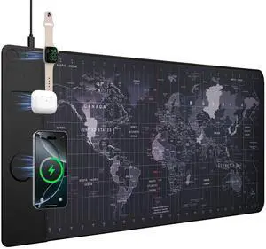 Mouse Pad with Wireless Charging, Gaming Mousepad, 31.5"x15.7" Extra Large Desk Mat XXL, Non-Slip Rubber Base, Waterproof Computer Keyboard Pad for Gaming, Home, Office, Black Desk Pad