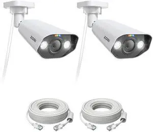 ZOSI 2Pack C182 5MP 3K Add-On PoE IP Security Bullet Camera Outdoor, AI Human Face Vehicle Motion Detection, Starlight Night Vision, 2-Way Talk, Smart Light & Siren Alert (Only Work with Our NVR)