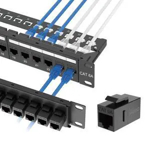 Lysymixs 24 Port RJ45 Patch Panel Cat6 STP Feed Through, Coupler Network Panel 19 Inch, Inline Keystone Ethernet Patch Panel with Back Bar