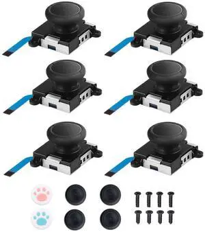 Joystick Replacement 6 Pack, Replacement Joy-stick Analog Thumb Stick for Switch Joycon Controller & Switch Lite, Left/Right Analog Joystick with Thumbstick Grips & Screws (6pcs Black)