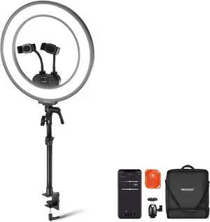 RL45B 18" Edge Lit Desk Ring Light for Phone Camera Laptop LED Lighting Kit Phone Holder Desktop Stand Ball Head Mount Video Conference Webcam Recording Zoom Call Streaming Makeup Selfie