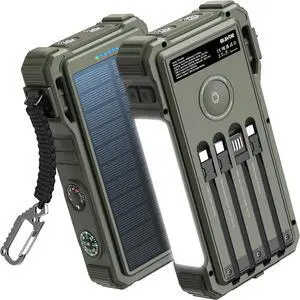Solar Power Bank 20000mAh/74000mWh Built-in Cables, Wireless Charger for appl e Watch, 20W Fast Charging Battery Pack with USB C, Flashlight, Solar Charger for iPhone, iPad, iWatch, Samsung