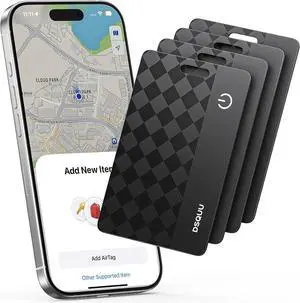 Wallet Tracker Card Air-Tag (iOS Only) Ultra-Thin 0.07in IP68 Waterproof Bluetooth Tracker for Wallets, Passport, Work with nd My, Wireless Charging, Anti-Loss Card Locator iOS Only (4 Pack)