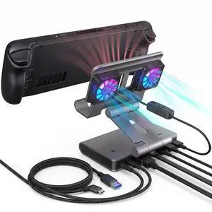 6-in-1 Gaming Docking Station, Built-in Cooling Fan & RGB Light, 4K@60Hz HDMI, Gigabit Ethernet, 100W PD Charging, Adjustable Stand, Portable Dock for Steam Deck, ROG Ally, Legion Go