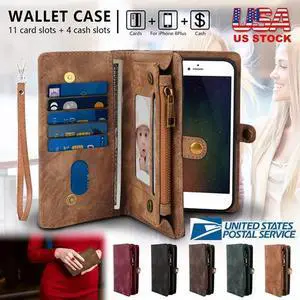 Phone Wallet Case For iPhone 8 Plus Portable Wallet Case 2 in 1 Leather Zipper Magnetic Detachable 15 Card Slots Money Pocket Clutch Cover W/ID Widows