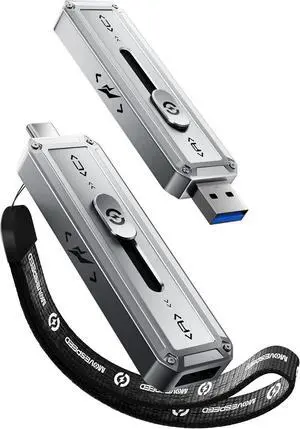 USB Drive 1TB External SSD 1000MB/s USB 3.2 Gen2+USB C Dual Ports Portable Zinc Alloy Thumb Drive Stick, External Drive with Metal Casing for iPhone 15/16/17 Series/Mac/Android Phone
