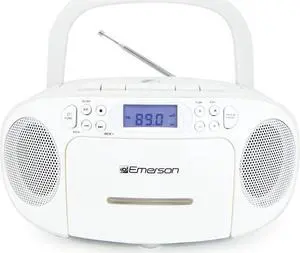 Emerson EPB-3003 Portable CD Player Boombox with Cassette Player Combo Tape Recorder AM/FM Radio AUX Headphone Jack Dual Speakers AC/DC & Battery Operated - Stereo System for Home or Travel
