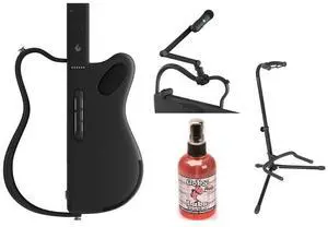 LAVA GENIE Stringless Guitar with Travel Case Black Bundle with LAVA GENIE Wireless Microphone Set, Rok-It Tripod Guitar Stand, Goby Labs Microphone Sanitizer