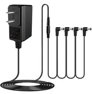 DC 9V Guitar Pedal Power Supply (800mA -1A) AC Wall Charger Adapter with 4 Way Daisy Chain Pedal Cables (8.8 FT), Compatible for Most Effect Pedals (Tip Negative)