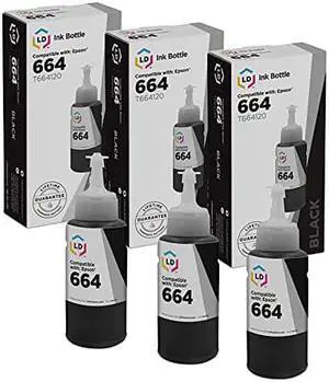 LD Compatible Ink Bottle Replacement for Epson 664 T664120 High Yield (Black, 3-Pack)