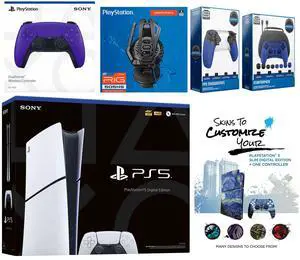 Sony Playstation 5 Slim Digital with Extra Galactic Purple Controller, Plantronics Headset, Gamer Kit, Trigger Kit and MightySkins Decal Voucher + 1 Year CPS Extended Warranty
