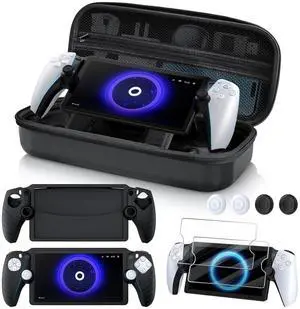 10 in 1 Accessories Bundle Compatible with PlayStation Portal, EVA Carrying Case for PS Portal with Silicone Protective Cover, 2 Pack Screen Protectors and 4 Thumb Grips for PS5 Portal Console