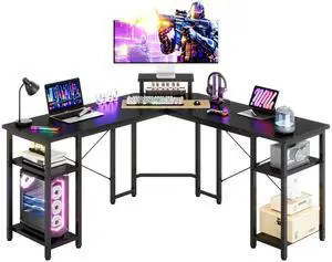 GUNAITO L Shaped Gaming Desk with CPU Stand, 61" Modern Corner Computer Desk,Reversible Office Desk 4-Tier Shelf