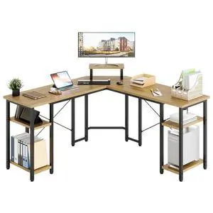 GUNAITO 61"L Shaped Computer Desk Office Desk with CPU Stand,Reversible Gaming Desk,Modern Corner Computer Desk with 4-Tier Shelf for Home Natural Wood