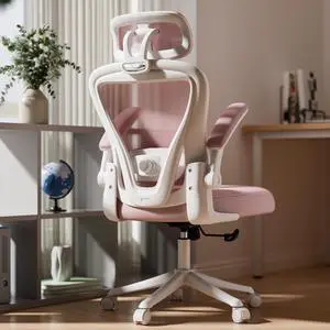 Ergonomic Office Chair M903, Computer Desk Chair with Wheels, High Back Mesh Office Chair with Adjustable Lumbar Support, Headrest, Flip-Up Armrests, Pink