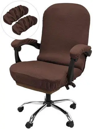 Office Chair Cover with Armrest Covers Stretchable - Zippered High Back Seat Cover for Extra Large Executive Desk Chairs, Big Tall Man(X-Large Size, Coffee)