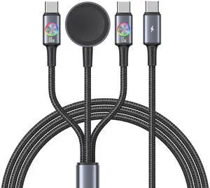 72W Super Fast Charging 3-in-1 Multi Charging Cable Dual USB-C Ports for iWatch Ultra/SE/10-1/iPhone 17/16/15 Pro Multi Charger for Watch Galaxy Phone Travel Essentials
