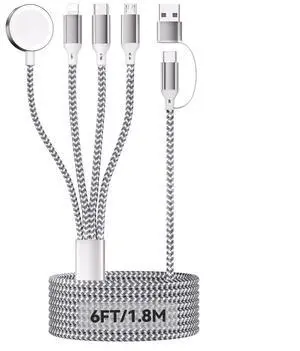 6FT/1.8M iWatch Charger 4 in 2 USB A/C to iOS Port/Type C/Micro USB/Charger Nylon-Braided Multi Fast Charging Cable Compatible for iWatch Ultra/SE/1-10/iPhone/iPad/AirPods/Galaxy/