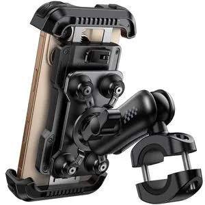 Thlevel Motorcycle Phone Mount Holder with Vibration Dampener Anti-Shake 720° Adjustable for iPhone 16 Pro Max for Samsung 5.4''-6.9'' Phone Anti-Theft Dirt Bikes(U Shape Base 0.6-1.1" Handlebar)