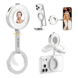 Magnetic Selfie Light for Video Calls, 360° Foldable Ring Light with 3 Colors & Dimmable Brightness, 1000mAh, MagSafe Compatible with iPhone 17-12 & All Phones for Zoom/TikTok/SelfieWhite