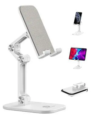 Phone Stand, Adjustable Height and Angle Foldable Cell Phone Stand Holder for Desk, Taller iPhone Stand Compatible with 4.7"-13" Smartphones iPad Tablet, White
