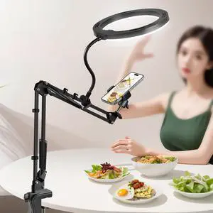 Overhead Phone Mount with Ring Light, 6.5in LED Selfie Ring Light for Desk,Adjustable Phone Mountfor Video Recording,Live Stream,Cooking Video