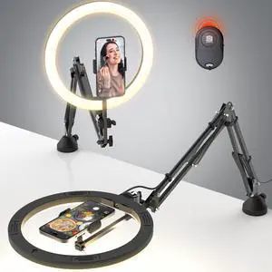 Upgrade Ring Light Overhead Phone Mount, 12Circle LED Desk Ring Light with Clamp for Video Recording,Flexible Articulating Phone Arm Stand Compatible with iPhone,Live Streaming YouTube Tiktok
