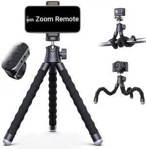 Phone Tripod with Zoom Wireless Remote for iPhone Video Recording, Mini Octopus Camera Stand for Content Creator, Bendable 360° Adjustable Phone Mount, Filming/Vlogging/YouTube/TikTok/Travel
