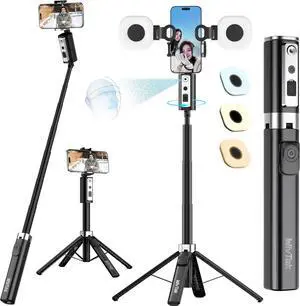 70 Auto Face Tracking Tripod 360° Rotation with Stand Phone Tripod with Fill Light Selfie Stick & Phone Stand for Recording Vlog/Live Stream/Video/TikTok Compatible with iPhone/Android