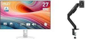 MSI 27" Full HD 120Hz IPS with Adaptive Sync Built-in Speaker White Computer Monitor for both work and gaming PRO MP275W E2 MSI MAG MT201W - Premium Heavy Duty Single Monitor Stand Arm, Supports 17-49" Screens and 44 lbs, VESA Compatible, A