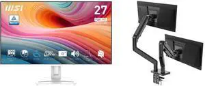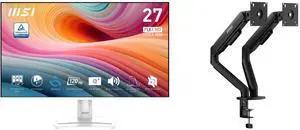 MSI 27" Full HD 120Hz IPS with Adaptive Sync Built-in Speaker White Computer Monitor for both work and gaming PRO MP275W E2 MSI MAG MT201D - Premium Heavy Duty Dual Monitor Stand Arms, 17-45" Support, VESA Compatible, Adjustable Spring Assi