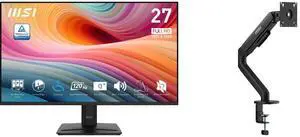 MSI 27" Full HD 144Hz IPS AMD FreeSync (Adaptive Sync) 1ms USB-C Built-in Speaker Computer Monitor for both Work and Gaming PRO MP272 E14C MSI MAG MT201 - Premium Heavy Duty Single Monitor Stand Arm, Supports 17-49" Screens and 44 lbs, VES