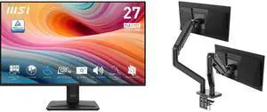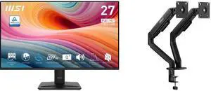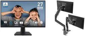 MSI 27" Full HD 120Hz IPS with Adaptive Sync Built-in Speaker Computer Monitor for both work and gaming PRO MP275 E2 MSI MAG MT201D - Premium Heavy Duty Dual Monitor Stand Arms, 17-45" Support, VESA Compatible, Adjustable Spring Assisted Mo
