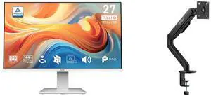 MSI 27" Full HD 120Hz IPS with Adaptive Sync Built-in Speaker White Computer Monitor for both work and gaming PRO MP275W E2 MSI MAG MT101G - Gas spring single Monitor Stand Arm, Supports 17-32" Screens and 22 lbs, VESA Compatible, Adjustabl
