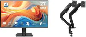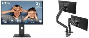 MSI 27" Full HD 144Hz IPS AMD FreeSync (Adaptive Sync) 1ms USB-C Built-in Speaker Computer Monitor for both Work and Gaming PRO MP272 E14C MSI MAG MT201D - Premium Heavy Duty Dual Monitor Stand Arms, 17-45" Support, VESA Compatible, Adjusta