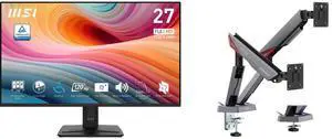 MSI 27" Full HD 120Hz IPS with Adaptive Sync Built-in Speaker Computer Monitor for both work and gaming PRO MP275 E2 MSI MAG MT101G - Gas spring single Monitor Stand Arm, Supports 17-32" Screens and 22 lbs, VESA Compatible, Adjustable gas S