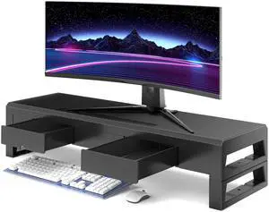 Computer monitor stand with 2 drawer ,Laptop Desk Shelf & Monitor Riser 21.6 inches long desk riser Monitors/PC/Laptop/Computer Space Saver Organizer ,Heavy Duty Gift Gaming Studio Offic (Basic Versio