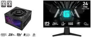 ASRock Phantom Gaming PG-750G 750W 80 PLUS GOLD & Cybenetics PLATINUM Full Modular Power Supply, ATX3.1 & PCIe5.1 Ready with Dual Color 12V-2x6 Cable, 10 Years Warranty MSI 24" (23.8" viewable) Full HD 144Hz IPS with Adaptive-Sync 1ms HDR R
