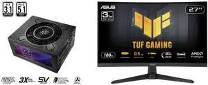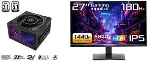 ASRock Phantom Gaming PG-750G 750W 80 PLUS GOLD & Cybenetics PLATINUM Full Modular Power Supply, ATX3.1 & PCIe5.1 Ready with Dual Color 12V-2x6 Cable, 10 Years Warranty ASUS TUF Gaming 27" QHD 2K 1440P 180Hz with AMD FreeSync, 0.5ms, 1500R,