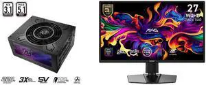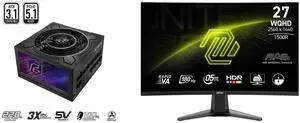 ASRock Phantom Gaming PG-850G 850W 80 PLUS GOLD & Cybenetics PLATINUM Full Modular Power Supply, ATX3.1 & PCIe5.1 Ready with Dual Color 12V-2x6 Cable, 10 Years Warranty MSI 27" WQHD 2K 1440P 240Hz with Adaptive Sync 0.03ms OLED Gaming Compu