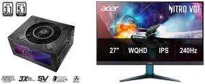 ASRock Phantom Gaming PG-750G 750W 80 PLUS GOLD & Cybenetics PLATINUM Full Modular Power Supply, ATX3.1 & PCIe5.1 Ready with Dual Color 12V-2x6 Cable, 10 Years Warranty Acer Nitro 27" WQHD 2K 1440P 240HZ IPS 0.5ms with AMD FreeSync Premium