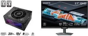ASRock PG-1300G 1300 W Power Supply GIGABYTE 27" QHD 2K 1440P 300Hz/OC 320Hz IPS with AMD FreeSync Premium Pro & G-SYNC Compatible 1ms USB-C KVM Gaming Computer Monitor with Height Adjustable, Pivot, Swivel & Tilt Stand M27Q3