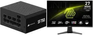 Corsair SF Series (2024) SF750, 80 PLUS Platinum, Fully Modular SFX Power Supply, CP-9020284-NA MSI 27" QHD 2K 1440P 180Hz with AMD FreeSync Sync 0.5ms HDR Ready support VRR Ai Vision Less Blue Light Anti-Flicker Curved Gaming Computer Moni