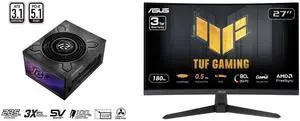 ASRock PG-850PSF 850W Power Supply ASUS TUF Gaming 27" QHD 2K 1440P 180Hz with AMD FreeSync, 0.5ms, 1500R, Extreme Low Motion Blur Curved Gaming Computer Monitor VG27WQ3B